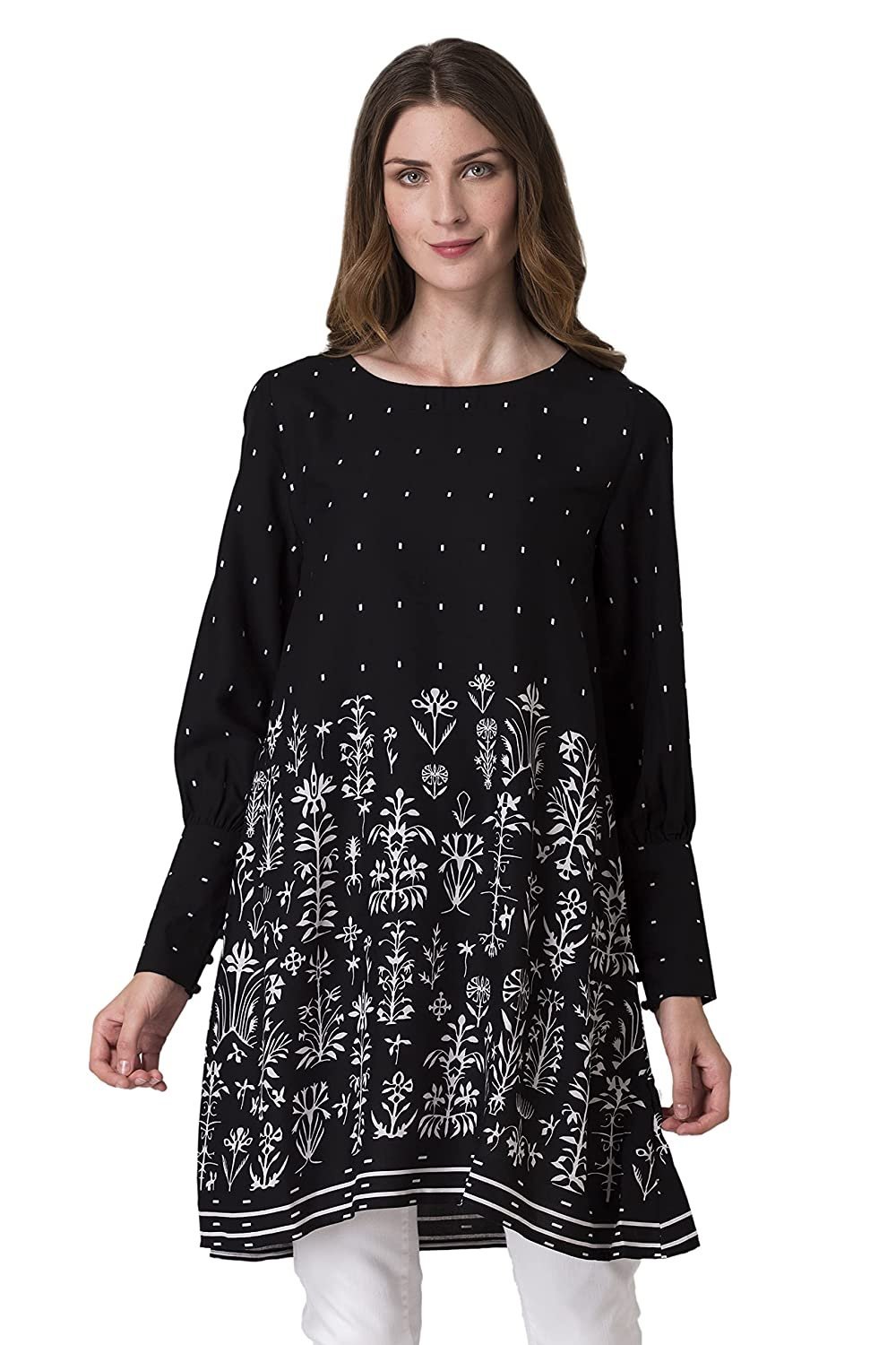 The Black Color tunic Mode by Red Tape is refreshing to wear for the Winter.100% Viscose 30’s rayon, the piece is ultra-breathable and soft inside out. Its extreme lightweight nature makes it a comfort long-duration wear for the hot days. It is best paired with denim and bellies.