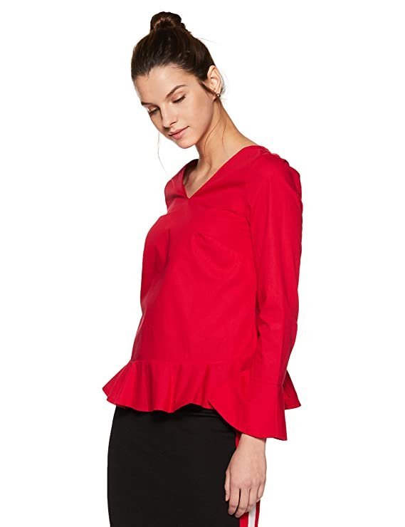 Vero Moda Women Red Solid V-Neck Long Sleeves Regular Fit Cropped / Short Casual Wear Top
